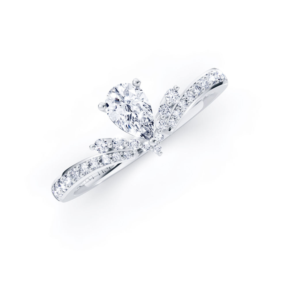 Diadème d'Amour系列 | 華美鬱金香花冠水滴形鑽戒| 18K白金 | PT950鉑金
