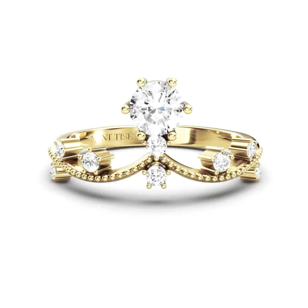Diadème d'Amour系列 | 小眾復古小皇冠六爪求婚鑽戒| 18K黃金