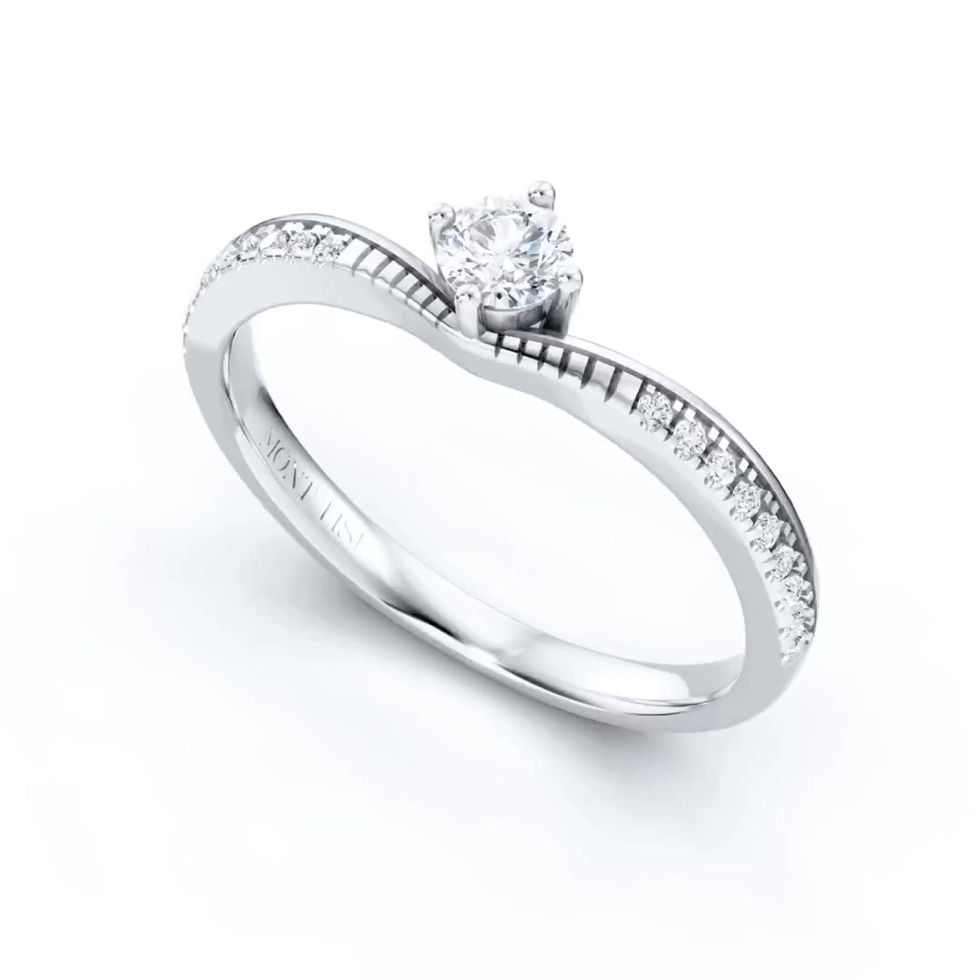 Diadème d'Amour系列 | 簡約風小皇冠碎鑽戒臂四爪圓形鑽戒 | 18K白金 | PT950鉑金
