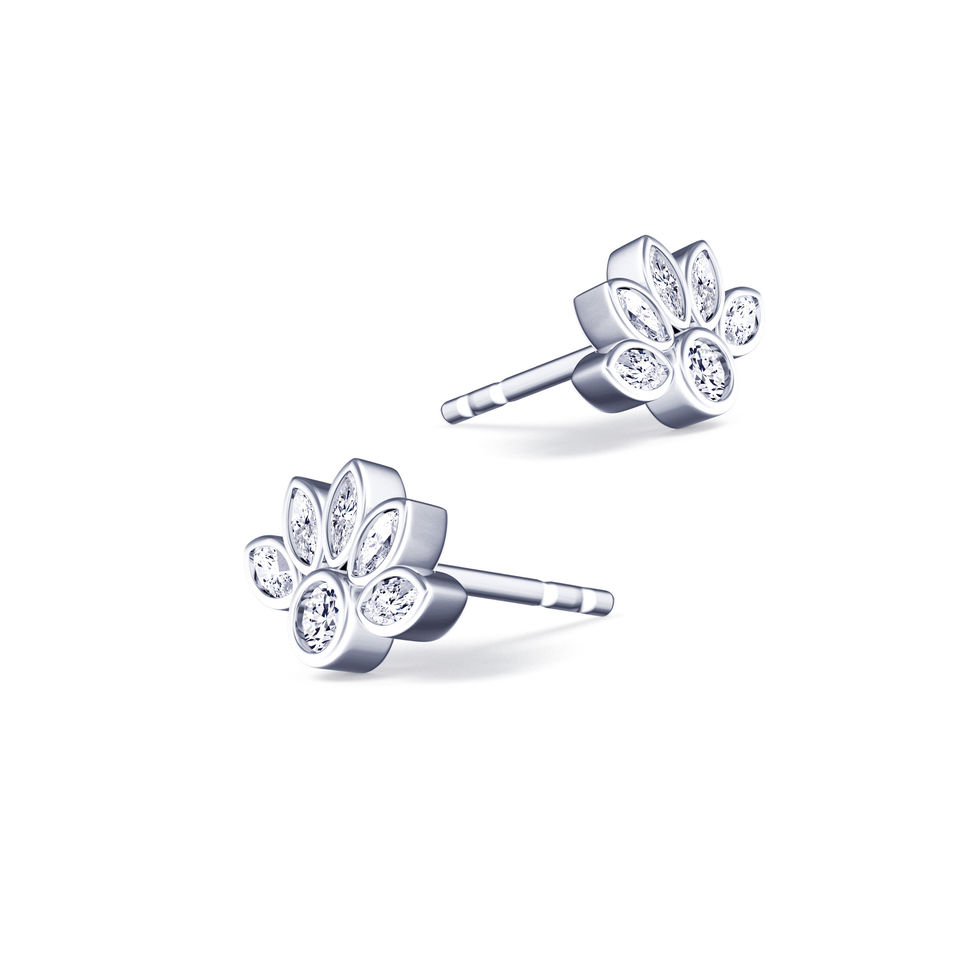 春意翠葉包鑲圓形鑽石耳釘 | 18K白金 | PT950鉑金