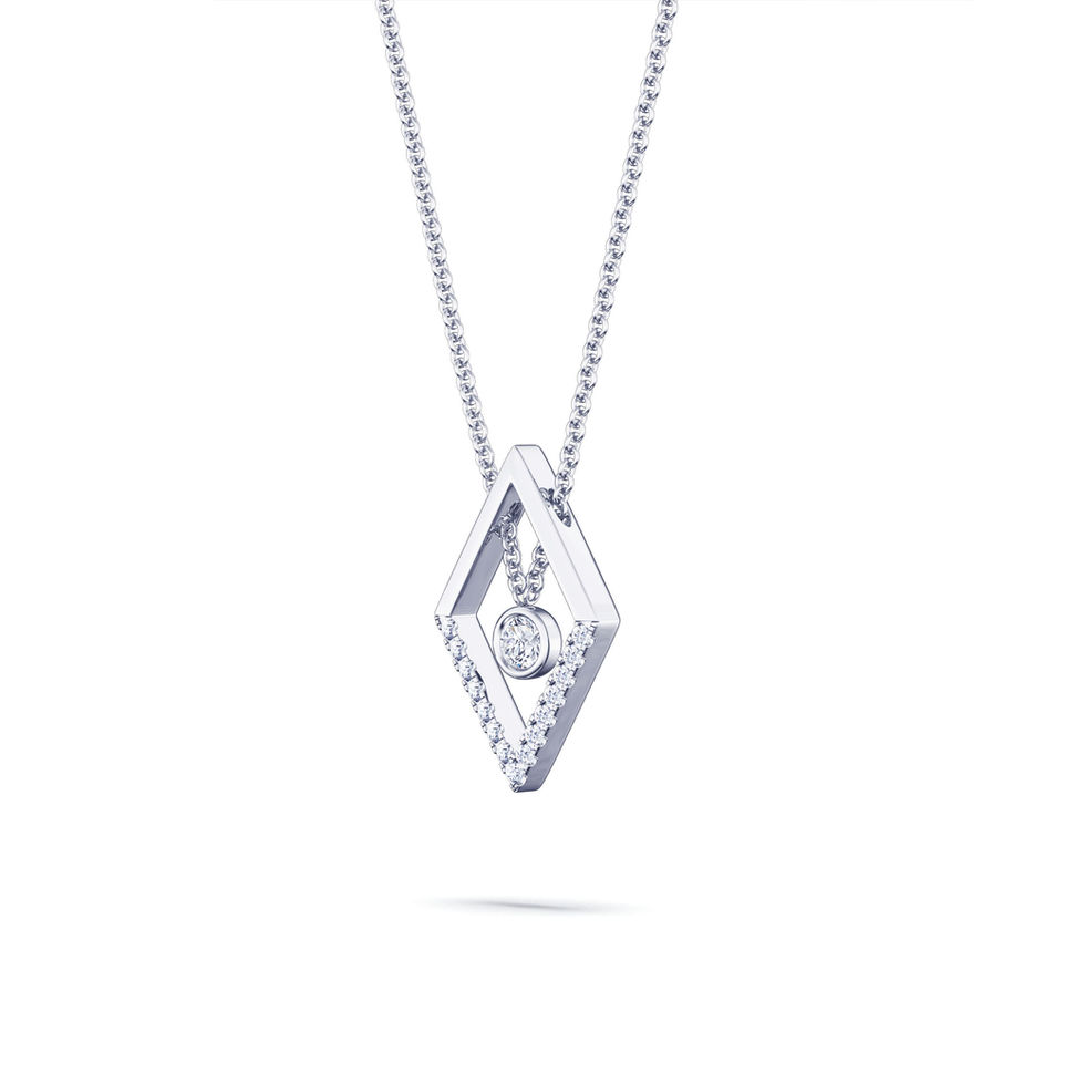 鑽石項鏈吊墜 · Rhombus | 幾何感菱形包鑲圓形鑽石吊墜 | 18K白金 | PT950鉑金