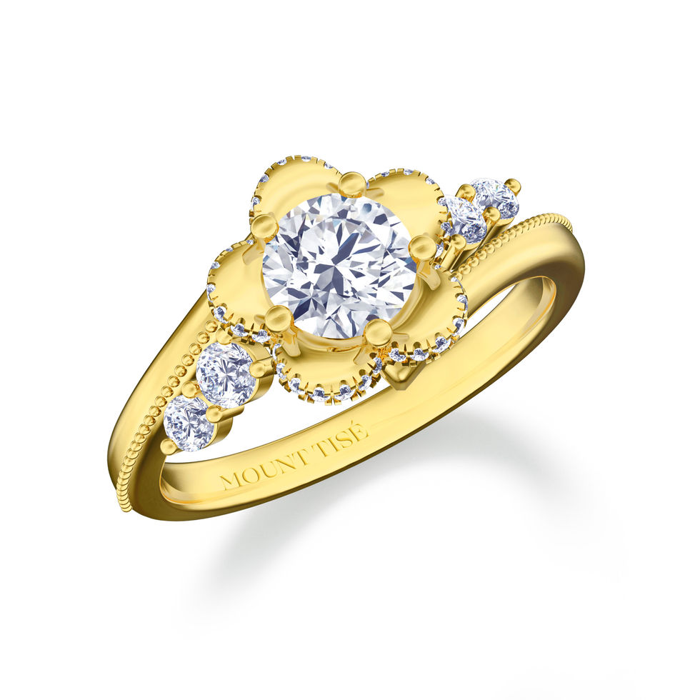 在每一位新娘的手指上,绽放一朵永恒的花。如夢似幻的花瓣輕輕托起鑽石,彷彿手中盛開的鮮花,散發出溫馨的愛意。這款手捧花鑽戒不僅是珠寶,更是愛情的象徵,象徵著新生活的開始和永恆的誓言。無論您走向何方,花開之處,皆為愛的芬芳。