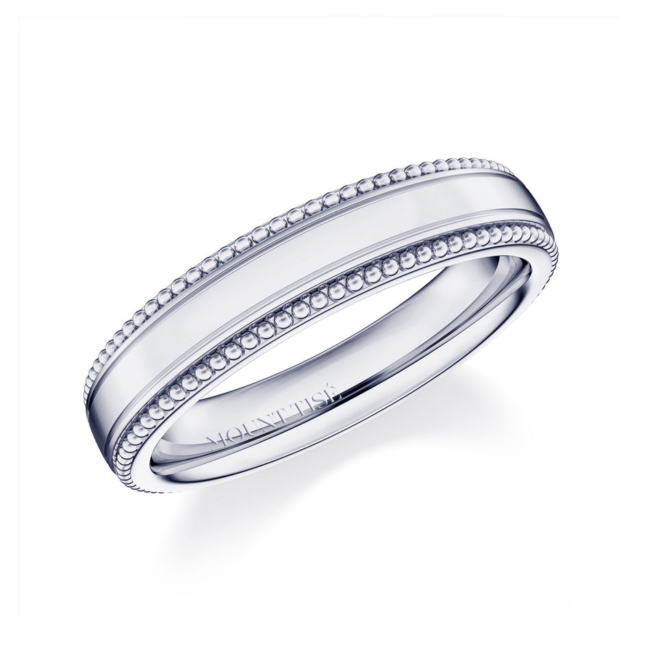 男士鑽戒 · 結婚鑽戒 | 復古大氣珠邊結婚素戒| 18K白金 | PT950鉑金