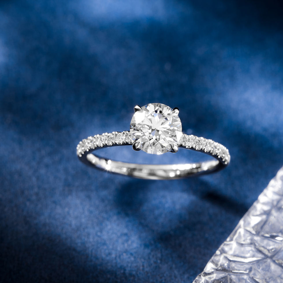 Lumière系列 · 滿鑽戒臂經典四爪求婚鑽戒 | 18K白金 | PT950鉑金