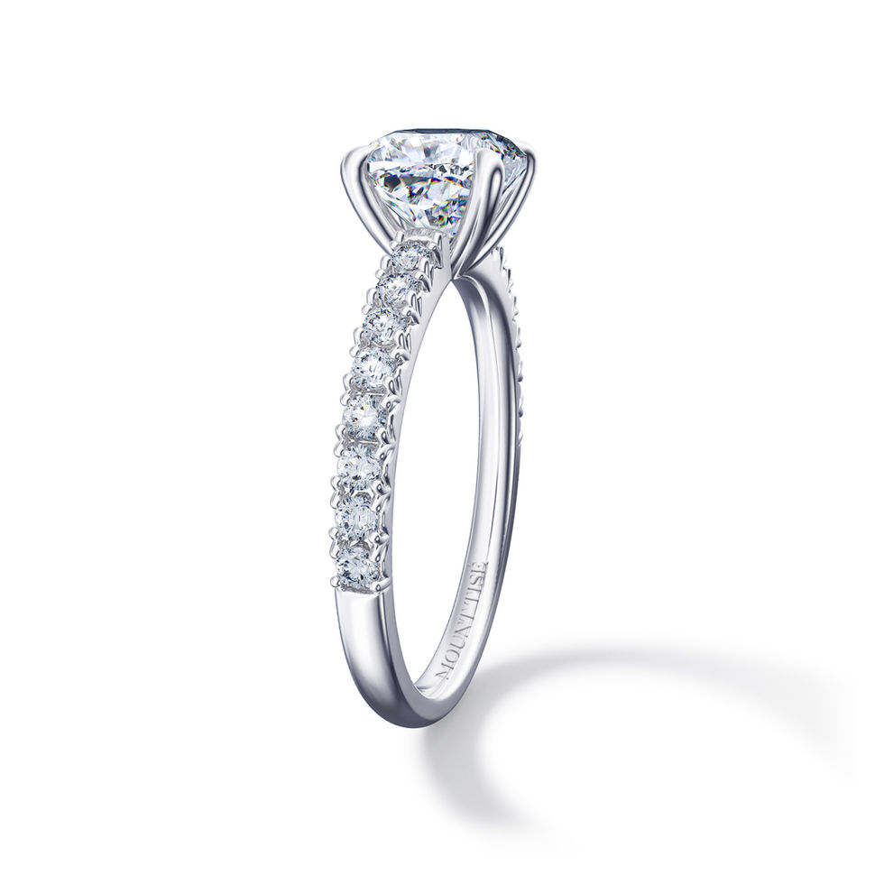 Lumière系列 · 滿鑽戒臂四爪墊形鑽戒 | 18K白金 |PT950鉑金