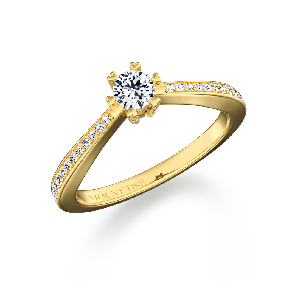Lumière系列 | 群鑲戒臂心形六爪圓形求婚鑽戒 | 18K黃金