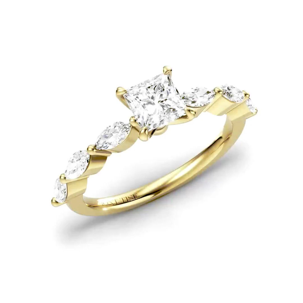 Lumière系列 | 時尚典雅四爪公主方形鑽戒 | 18K黃金