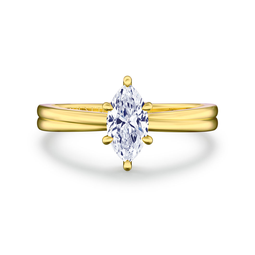 Lumière系列 | 簡約百搭寬型戒臂六爪馬眼形鑽戒 | 18K黃金