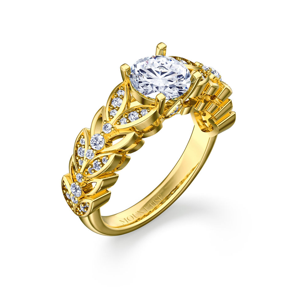 Lumière系列 | 葉舞流光四爪圓形求婚鑽戒 | 18K黃金