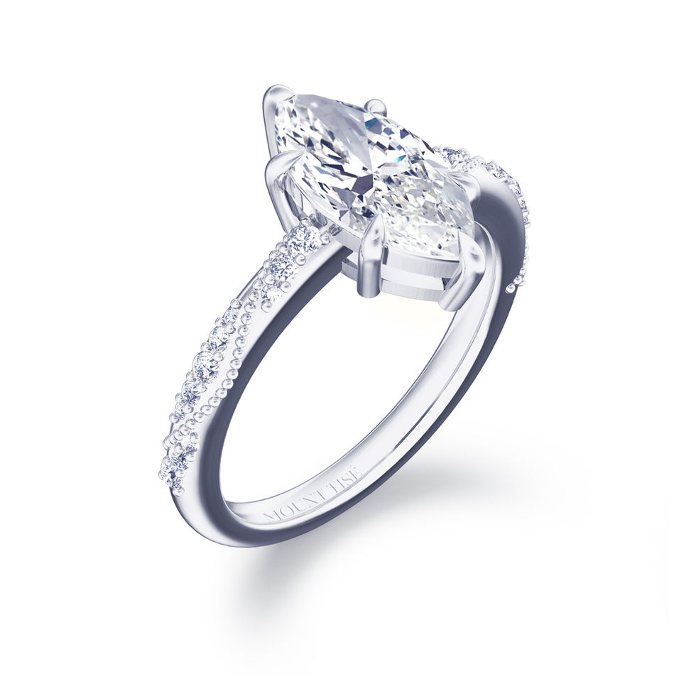 Lumière系列 | 輕奢風碎鑽戒臂六爪馬眼形鑽戒 | 18K白金 | PT950鉑金