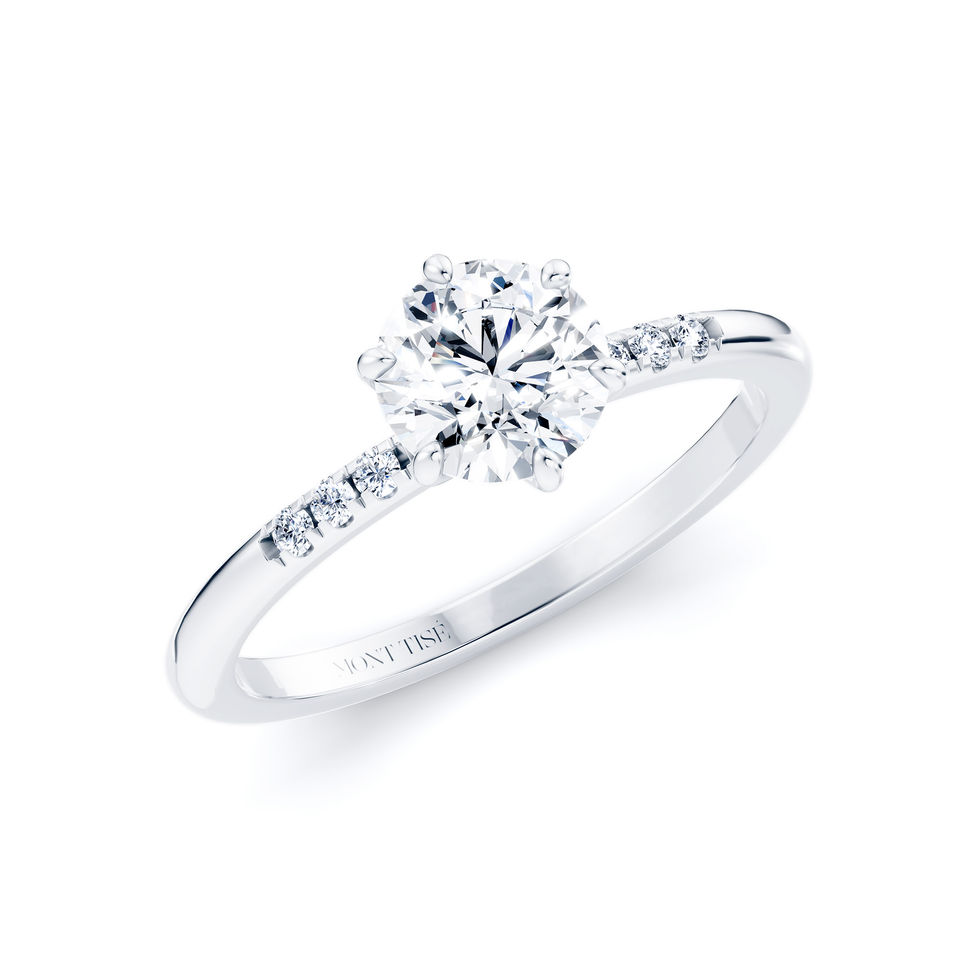 Lumière系列 | 簡約大氣副鑽六爪圓形鑽戒 | 18K白金 | PT950鉑金