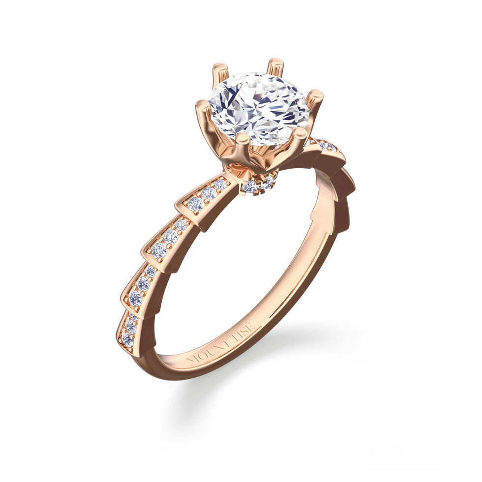 Lumière系列 | 階梯碎鑽戒臂六爪圓形鑽戒 | 18K玫瑰金