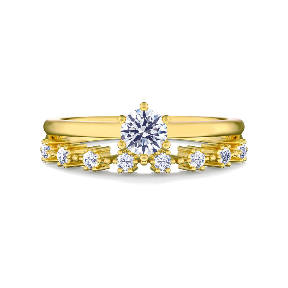 Lumière系列 | 小眾設計感鏤空點綴式六爪圓形鑽戒 | 18K黃金