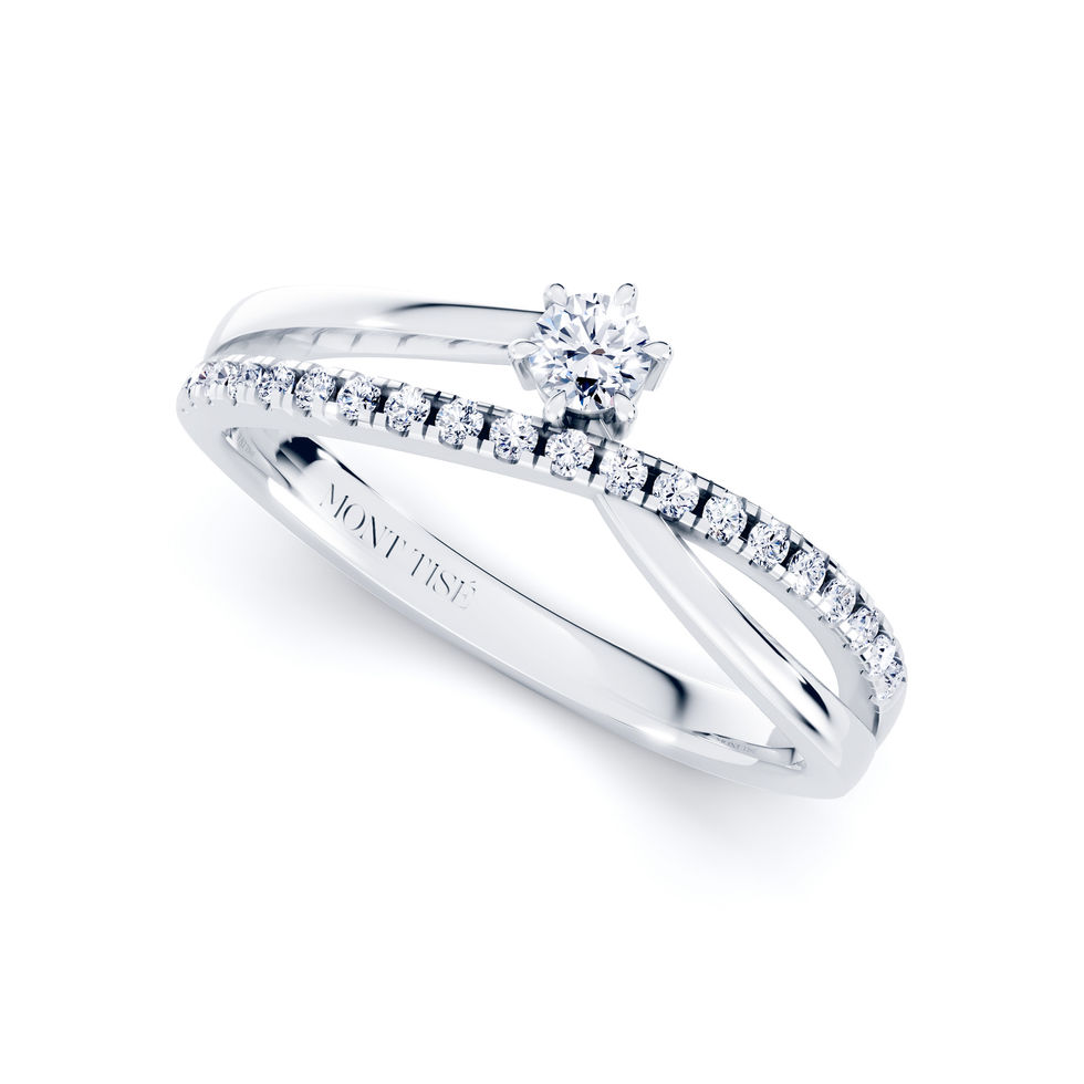 Majestueuse系列 | 小眾設計感碎鑽分叉扭臂四爪圓形鑽戒 | 18K白金 | PT950鉑金