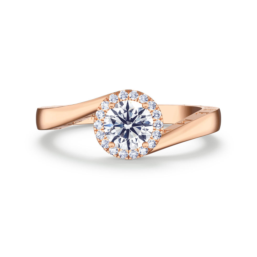 Majestueuse系列 | 華麗圍鑲扭臂四爪圓形鑽戒 | 18K玫瑰金