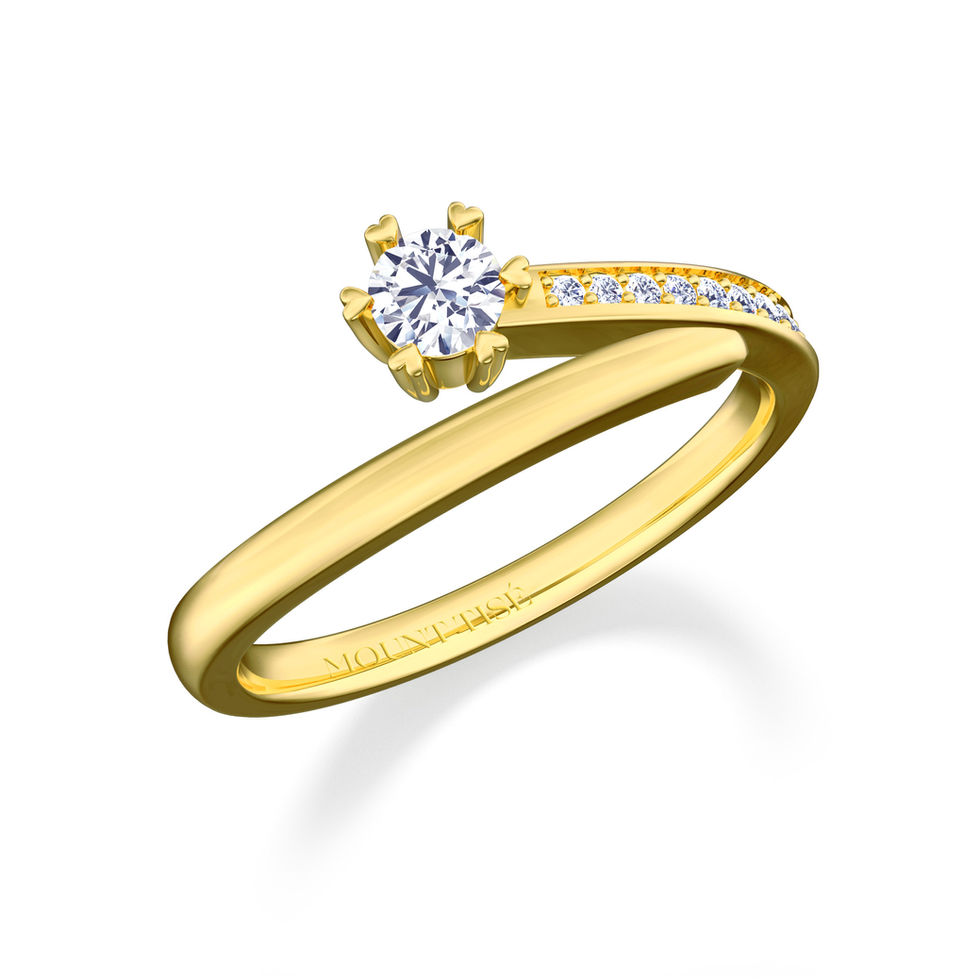 這款鑽戒的扭臂設計,猶如山川流轉優雅,蜿蜒流轉,為手指增添了柔美的線條。設計優雅大氣,獨特的扭臂造型既展現了女性的柔美,又增添了立體感。它不僅修飾手型,還象徵感情如山川般流轉不息,猶如星辰閃爍。它不僅點亮了手指,更承載著流長如山川的感情,是愛情旅程的完美象徵。