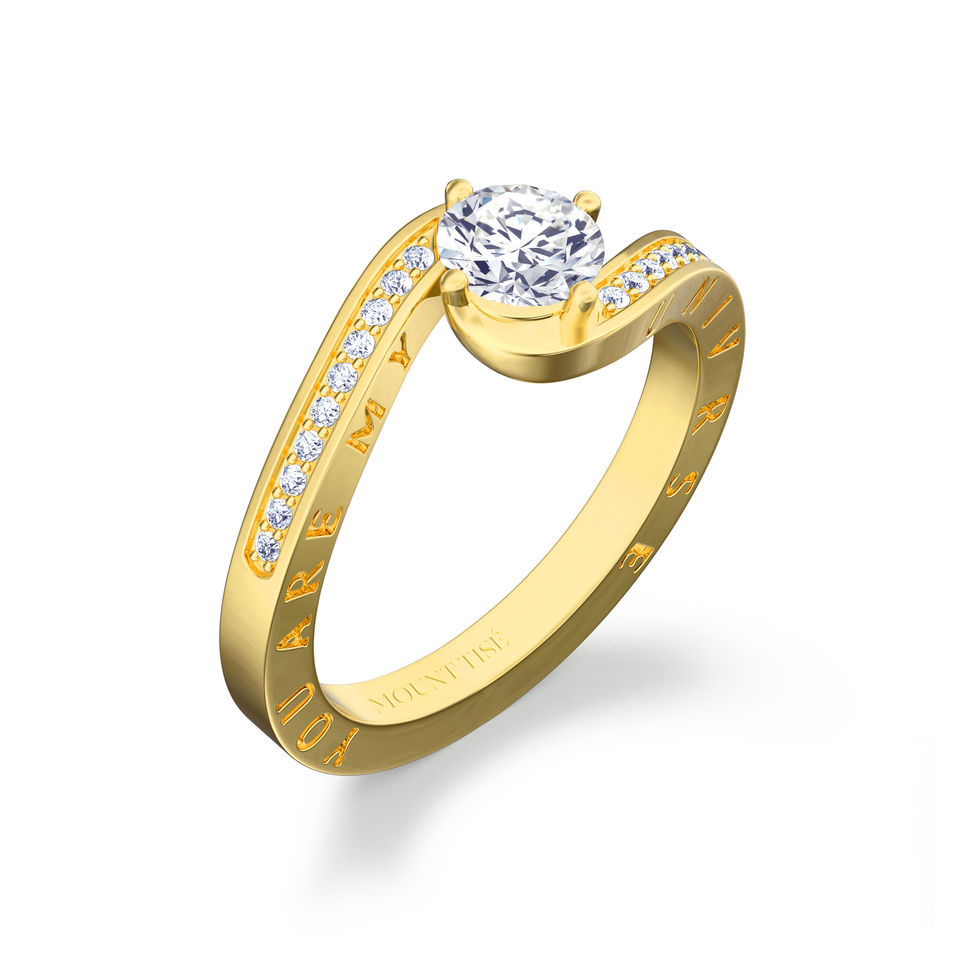 Majestueuse系列 | 小眾高級感碎鑽扭臂四爪圓形鑽戒 | 18K黃金